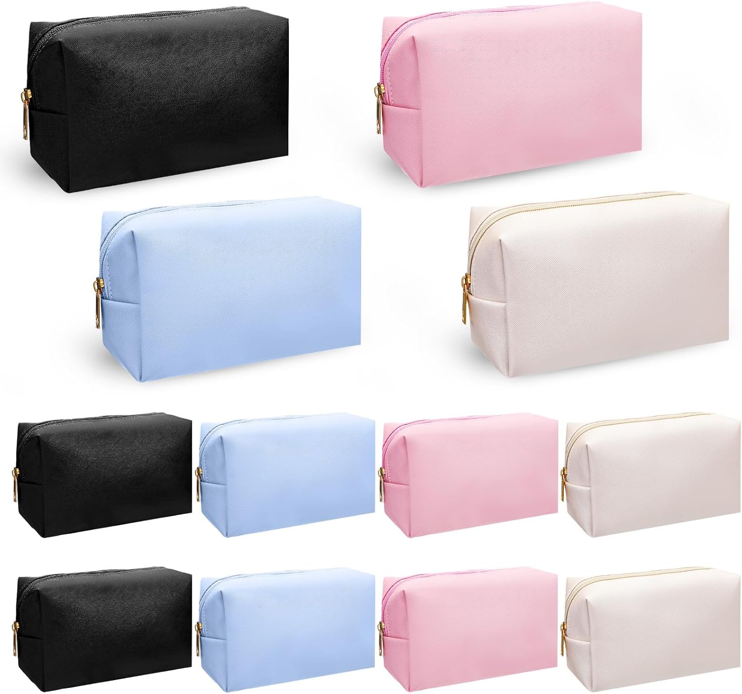 12 Pcs Preppy Makeup Bag PU Leather Cosmetic Bag Bulk Makeup Plain Pouch Waterproof Toiletry Purse for Women Traveling Preppy Pencil Case Travel Purse Cosmetic(Mixed Colors