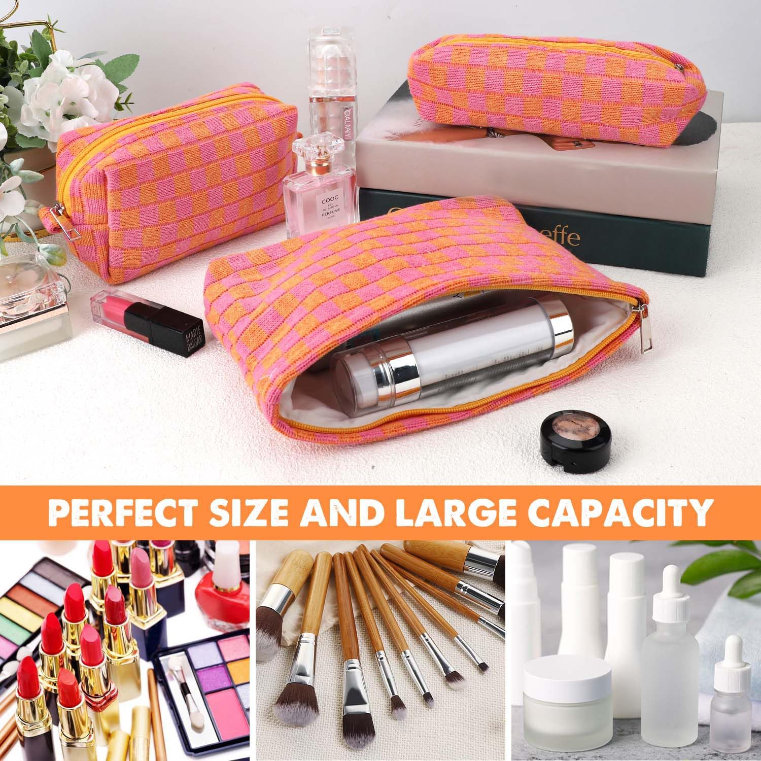 - ★★Makeup bag set of 3– For the same price you get 3 checkered make up bag.The large-capacity travel Organizer can be used for skincare products Toner Lotion Mask,the medium cosmetic bag can be used for lipstick eye shadow perfume and other makeup, and the small toiletry bag can be used for makeup brushes. No more rummaging through your makeup bag when you’re organized!
