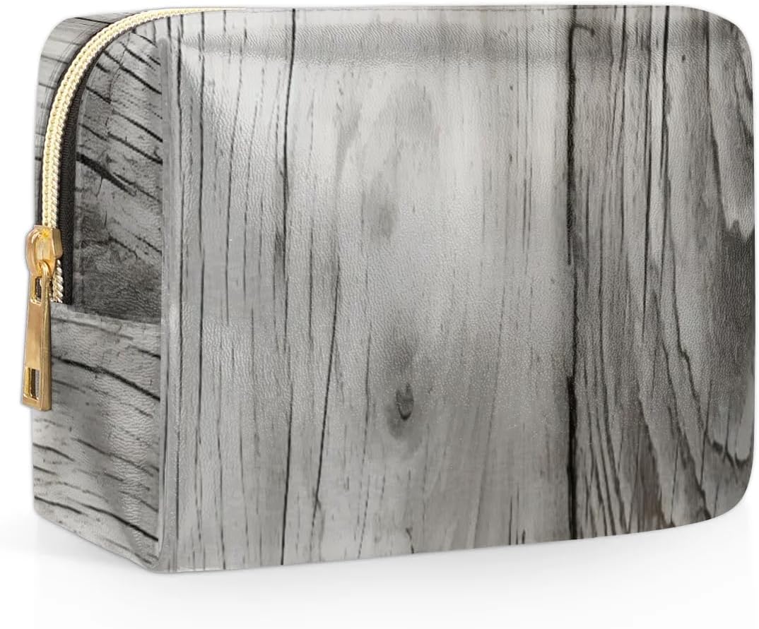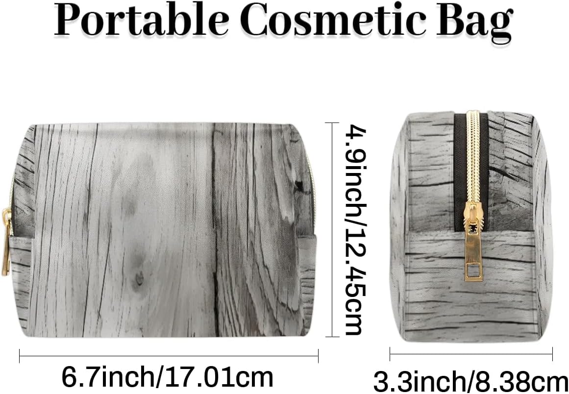 Abstract Wood Grain Prints Travel Makeup Bag for Women, PU Leather Waterproof Checkered Cosmetic Bags Large Make up Bag Zipper Pouch