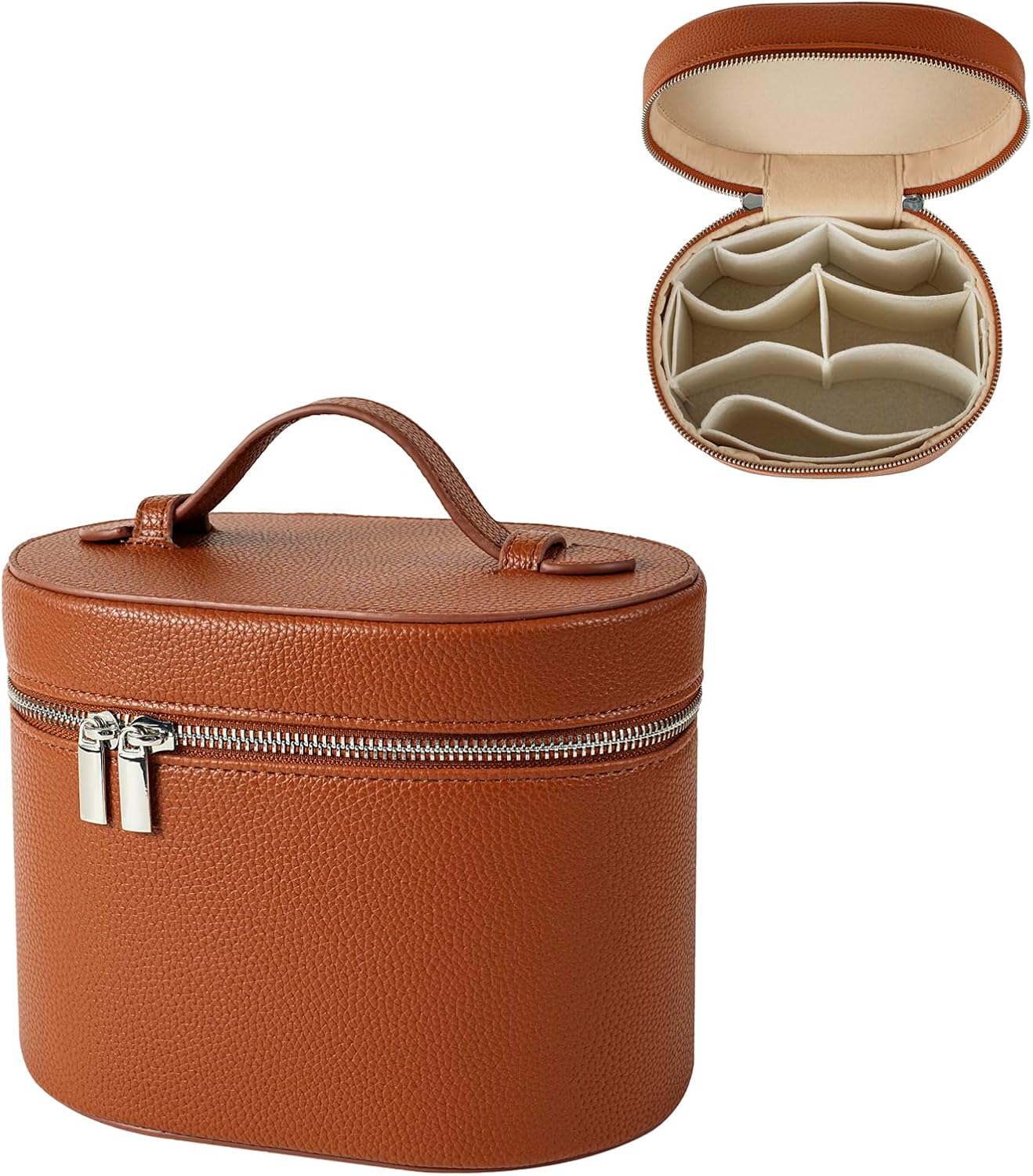 Aesthetic Makeup Bag, Travel Makeup Vanity Case with Divider and Handle, Waterproof PU Leather Cosmetic Organizer Bag, Portable Toiletry Bag for Women(01Brown)