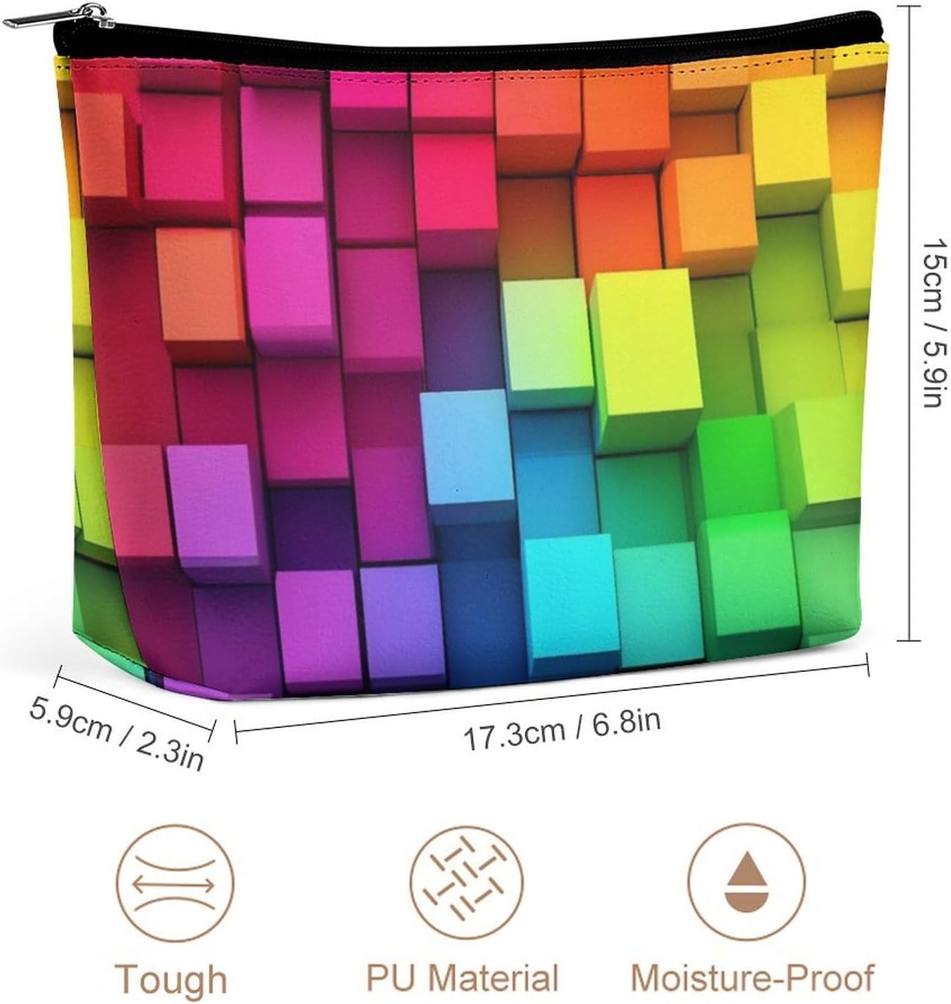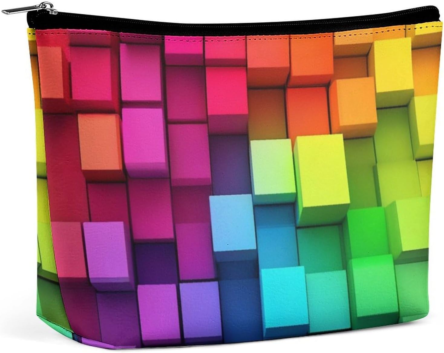 Casual Make Up Bag Travel Bag, Rainbow Colorful Blocks Cosmetic Train Case Organizer Large Capacity Carry On Bag, Luggage Pouch, Makeup Pouch for Women Girls Ladies