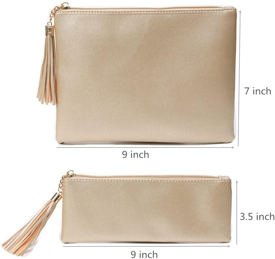 Cosmetic Bag for Purse Leather Zipper Makeup Pouch with Makeup Brush Bag Cute Makeup Bags for Women Travel (Metallic Golden)