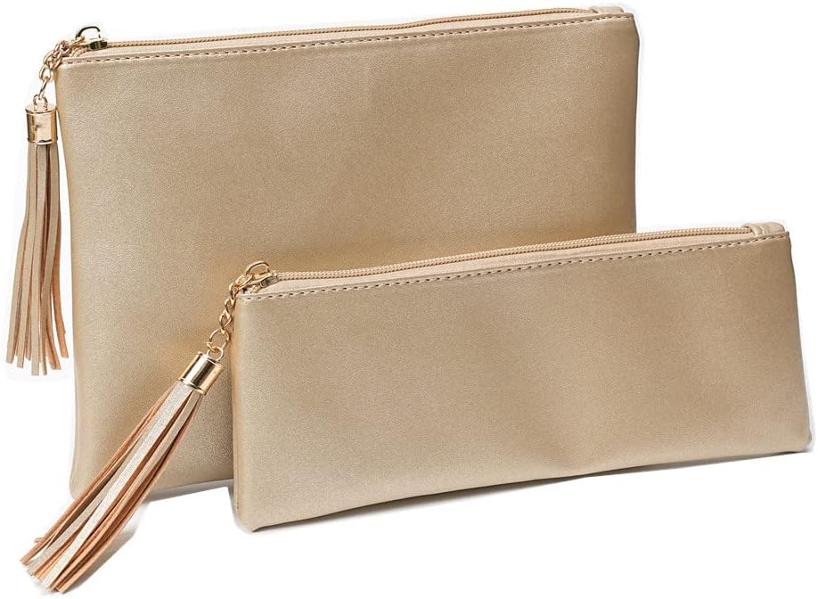 • Spacious bags fit makeup, skincare, brushes, travel essentials; keep purse organized