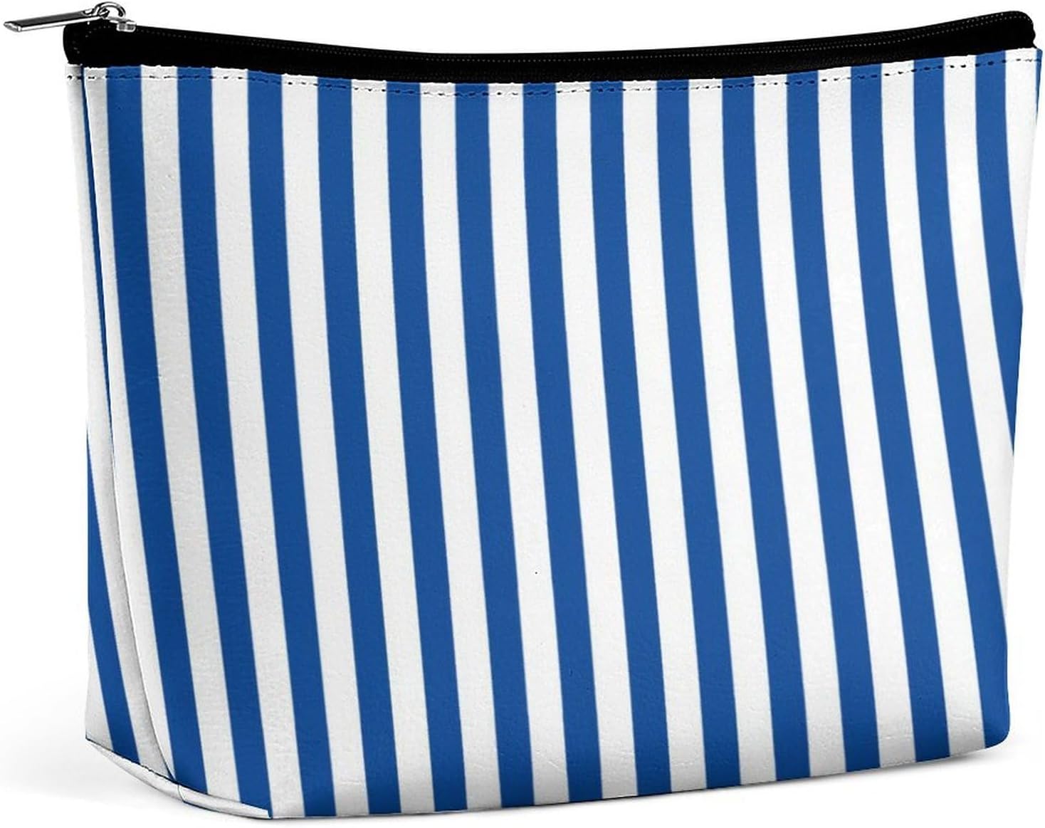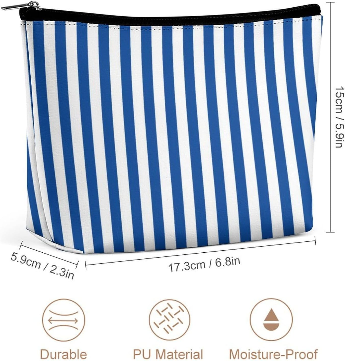 Makeup Bag for Women, Adorable Roomy Zipper Pouch Portable Organizer Cosmetic Bag Travel Storage Accessories (Navy and White Stripes Geometric Patterns)