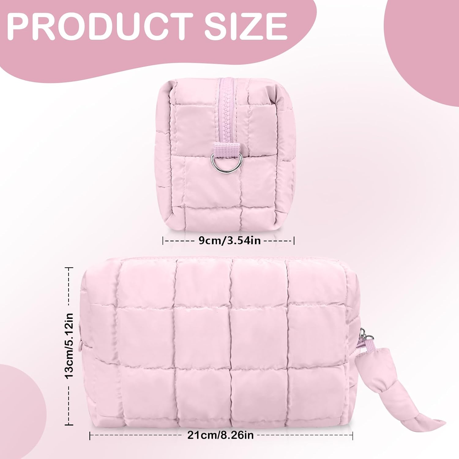 - 【Multi functional and high-capacity design】This cute makeup bag measures 8.26 inches, 3.54 inches, and 5.12 inches, making it easy to carry. Makeup pouch the main compartment is spacious and can easily accommodate daily necessities such as skincare products, makeup, and makeup brushes, is travel essentials for women. It also comes with multiple inner compartment compartments for easy classification and storage, meeting travel or daily use needs.