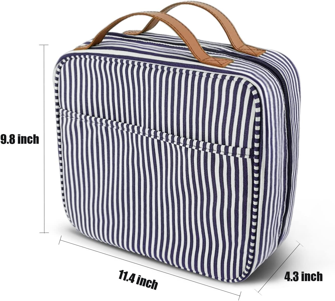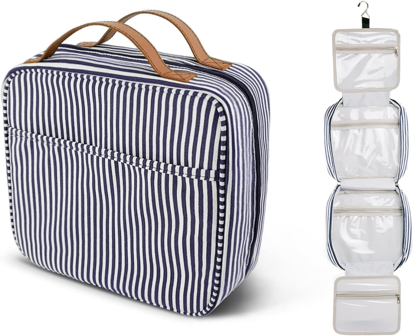 Travel Toiletry Bag with Hanging Hook, Waterproof Makeup Cosmetic Bag Travel Organizer for Accessories,Bathroom Shower, Toiletries (Blue&White Stripe)