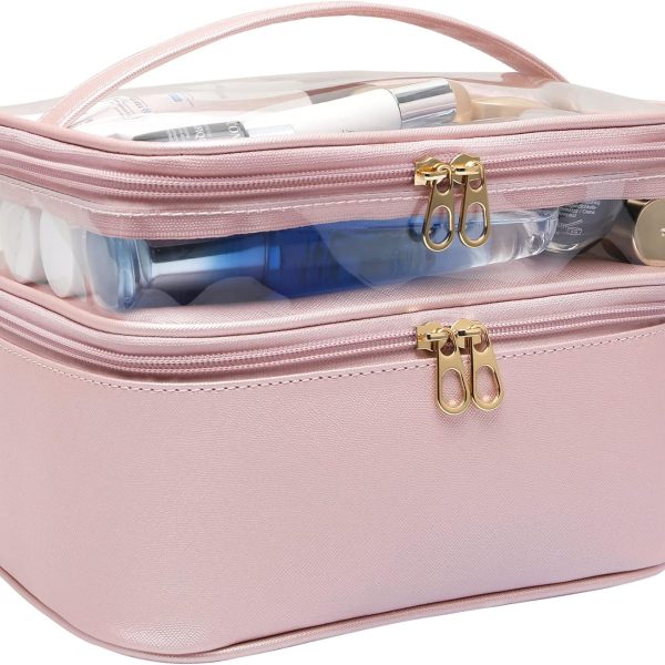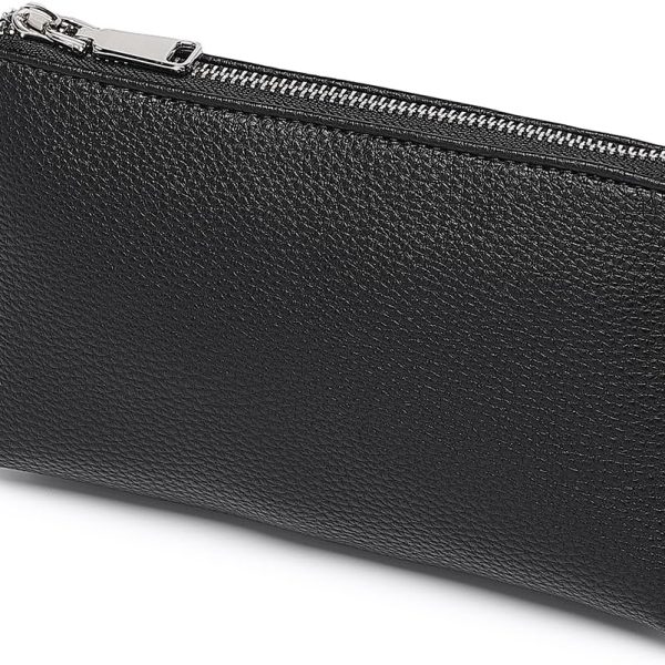 PU Leather Makeup Bag, 2pcs Black Cosmetic Bags for Purse Diaper Bag Travel